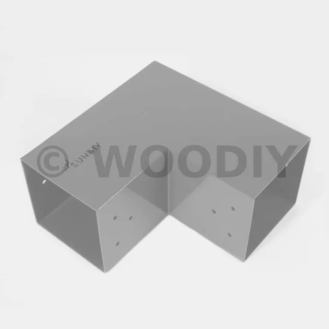 Il est utilisé dans un angle extérieur. Ce connecteur va permettre de raccorder une grosse poutre 120x120mm perpendiculairement à une autre poutre ou à un poteau vertical 120x120mm.