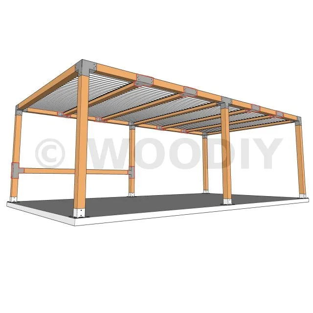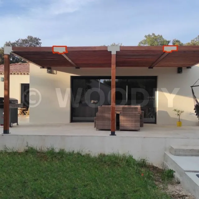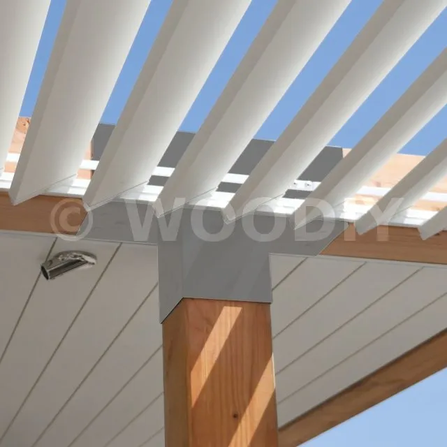 Il permet également la connexion d’une longue poutre de 120x120mm à un poteau intermédiaire de 120x120mm.
