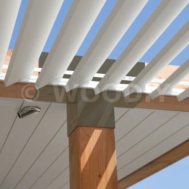 Il permet également la connexion d’une longue poutre de 120x120mm à un poteau intermédiaire de 120x120mm.