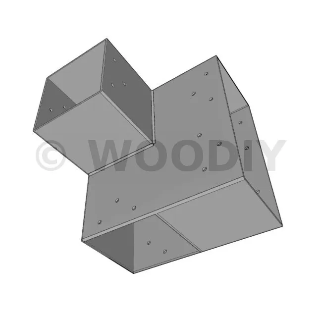 Il est utilisé dans un angle extérieur. Ce connecteur va permettre de raccorder une grosse poutre 240x120mm perpendiculairement à une poutre 120x120mm, le tout étant supporté par un poteau vertical 120x120 mm.