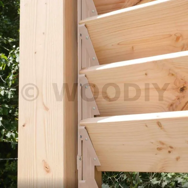 Solide, durable, résistant aux UV. Ce mécanisme vous permet de construire vous-même votre pergola bioclimatique, vos brises-vues ou volets à lames orientables, à votre goût et à vos mesures. Ils supportent des lames en bois ou en aluminium.