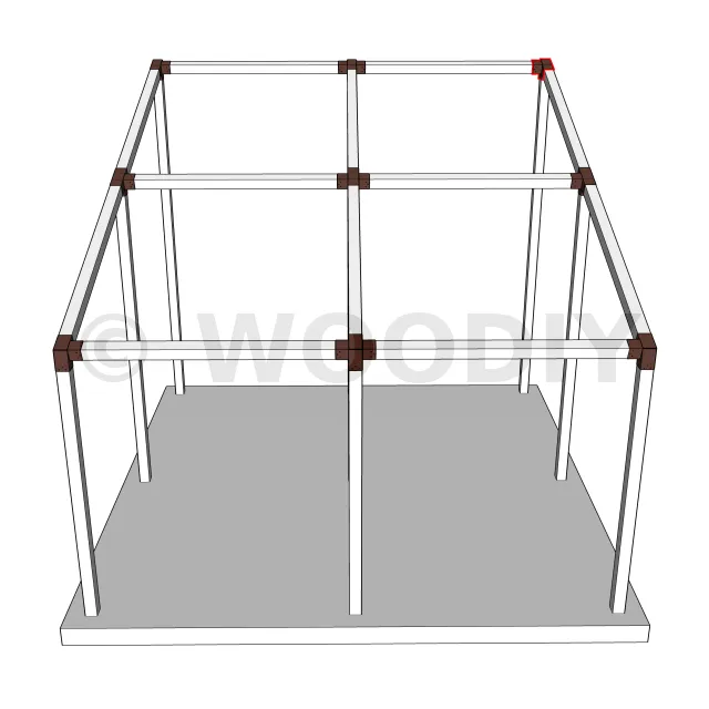 Il est utilisé dans un angle extérieur. Ce connecteur va permettre de raccorder une poutre 120x120mm à une poutre 120x120mm avec une pente de 20°, le tout étant supporté par un poteau vertical 120x120mm.