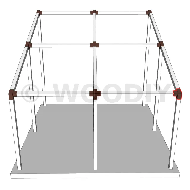 Il est utilisé dans un angle extérieur. Ce connecteur va permettre de raccorder une poutre 120x120mm à une poutre 120x120mm avec une pente de 20°, le tout étant supporté par un poteau vertical 120x120mm.