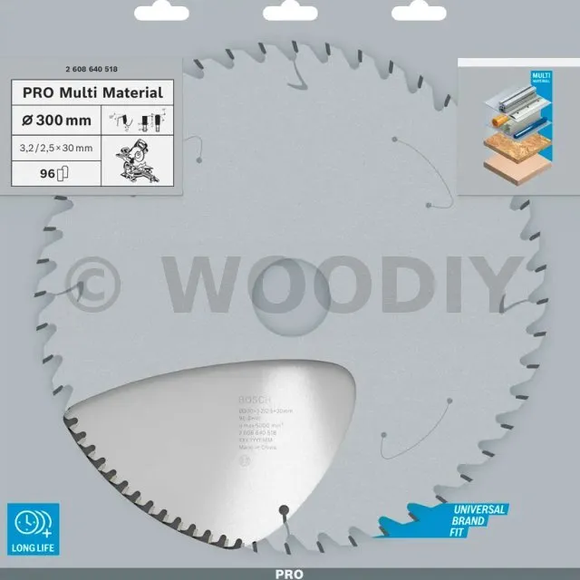 Lame de scie circulaire PRO 300 x 30 x 3.2 mm - 96 dents - Multi matériaux - Réf. 2608640518