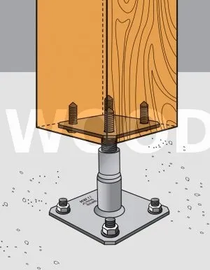 Ce modèle de pied de poteau est réglable en hauteur. Simple et rapide à installer, il peut être réglé sur le chantier.