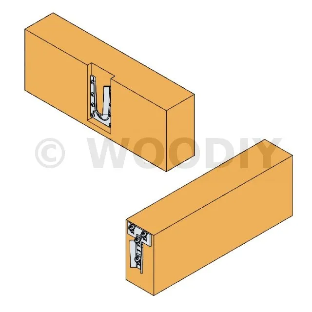 Il est recommandé d’utiliser un gabarit pour la pose de la partie mâle afin d’éviter que la pièce glisse lors de la pose des vis inclinées.