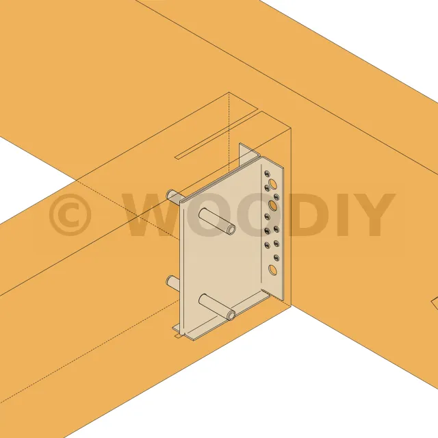 L‘étrier à âme intérieure permet un assemblage discret sur support bois. Le talon intérieur positionne l’étrier par rapport au bois facilitant le montage des broches.