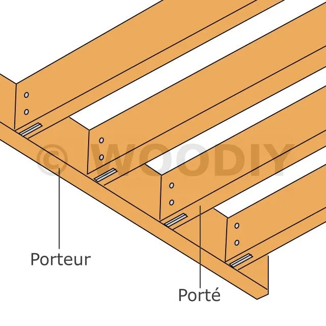 Sur porteur bois (exemple : La poutre sur laquelle les étriers seront fixés) :