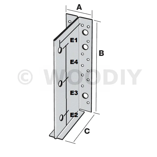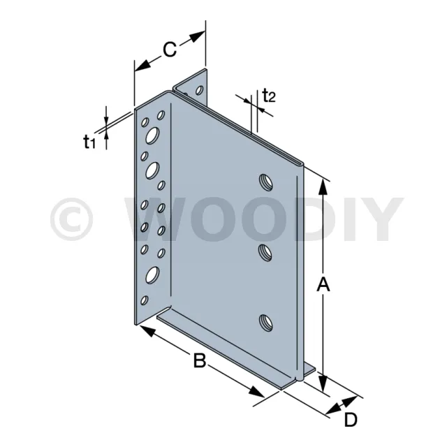 | Largeur | Hauteur | Largeur poteau | Hauteur (A) | Profondeur (B) | largeur (C) | largeur (D) | Epaisseur (t1) | Epaisseur (t2) | Ø13 | Ø5 | Ø13 | ||