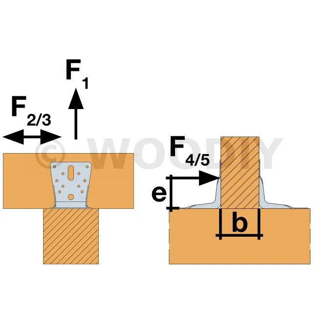 Pour obtenir les valeurs de résistance pour une seule équerre, il convient de diviser par deux les valeurs du tableau ci-dessus à condition que la poutre portée soit bloquée en rotation. Consulter notre ETE-06/0106 si la poutre est libre en rotation.