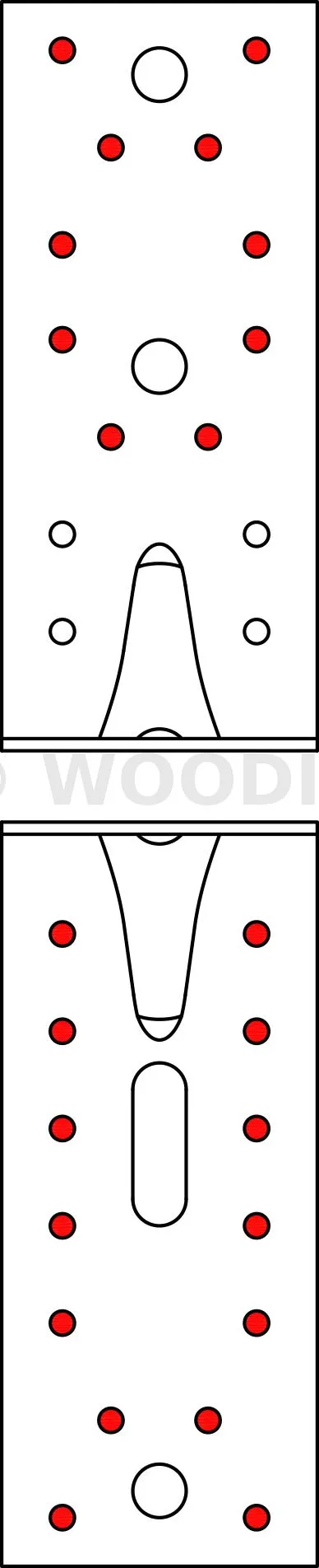 - Fixation BOIS/BOIS - clouage total2 équerres ; Aile A : 12CNA Ø4.0x35 ou Ø4.0x50 mm ; Aile B : 14CNA Ø4.0x35 ou Ø4.0x50 mm