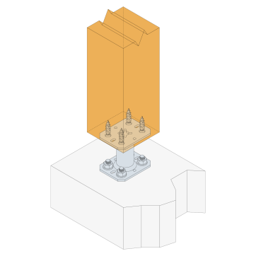 * Referez vous à la gamme d’ancrage Simpson Strong-Tie pour sélectionner l’ancrage adapté. Les solutions standards sont BOAXII, SET-XP, WA, AT-HP, à choisir en fonction du type de béton, de l’entraxe et des distances aux bords.