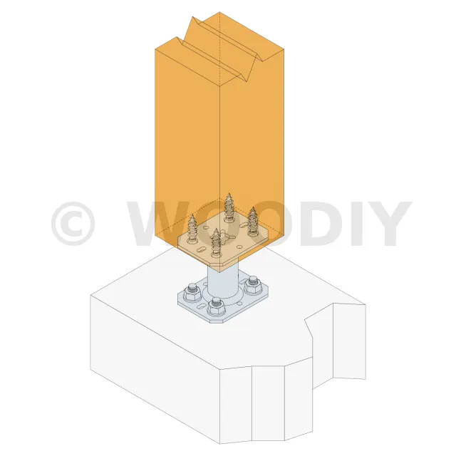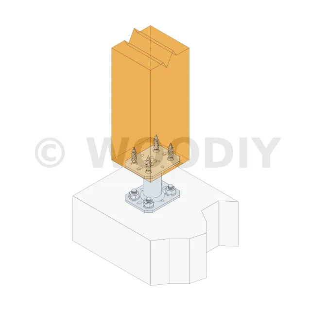 2. Fixer cette platine au poteau à l’aide de tirefonds LAG (Pré-perçage nécessaire)