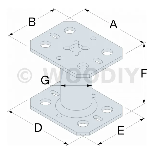 Pied de poteau mini fixe, hauteur (B) : 80mm, cdt : 25 pièces - Réf. PPMINI80_25