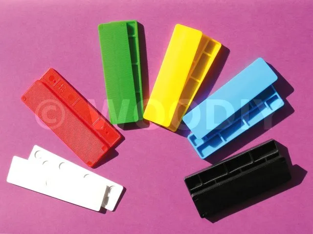 Cales plates en plastique indispensables pour la pose dans tous les corps de métier du second oeuvre, vitrage, agencements, etc.
