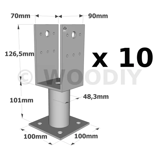 Pieds de poteau en U avec platine - Réf. PPUP90_10