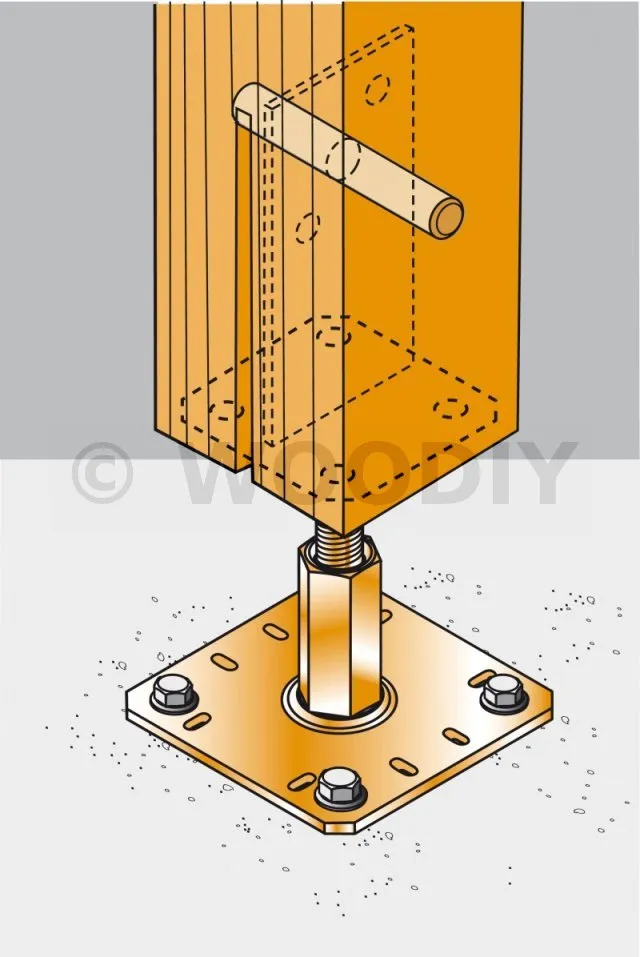 - Connexion bois sur support rigideSur poteau : 2 STD12 ; sur béton : 4Ø10 (goujons WA M10 ; tige filetée M10) ; sur acier : boulons