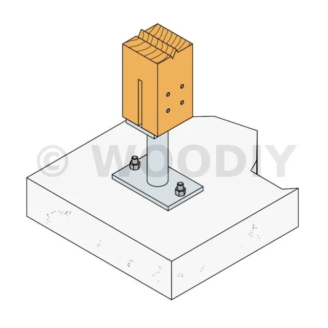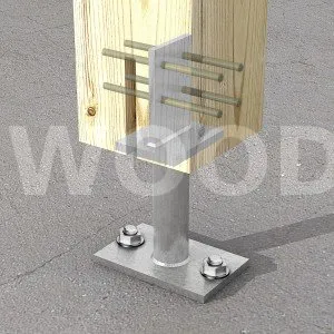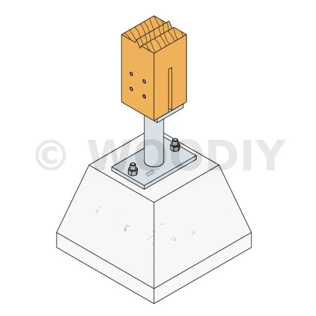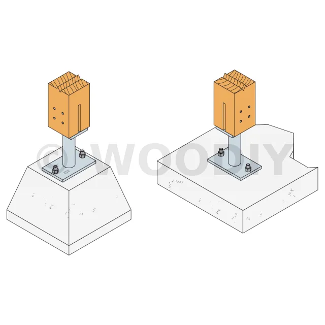 - Connexion bois sur support rigideSur poteau : 4Ø8 (broches STD) ; sur béton : 2Ø12 (goujons WA ; tige filetée)