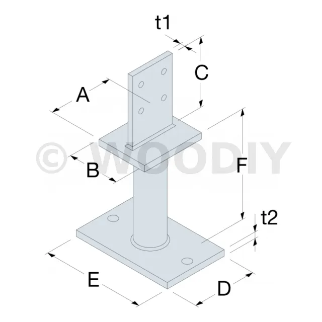 - La longueur des broches correspond à la section du poteau.