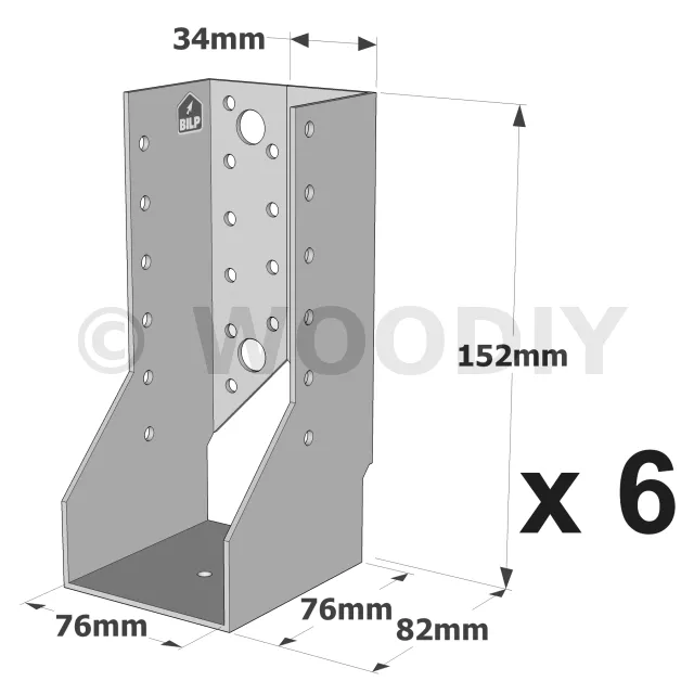 On admet une tolérance de 2 mm maximum entre l‘épaisseur du bois et la largeur du sabot. Exemple : un sabot plié à 76 mm peut porter une épaisseur de bois de 74 mm.