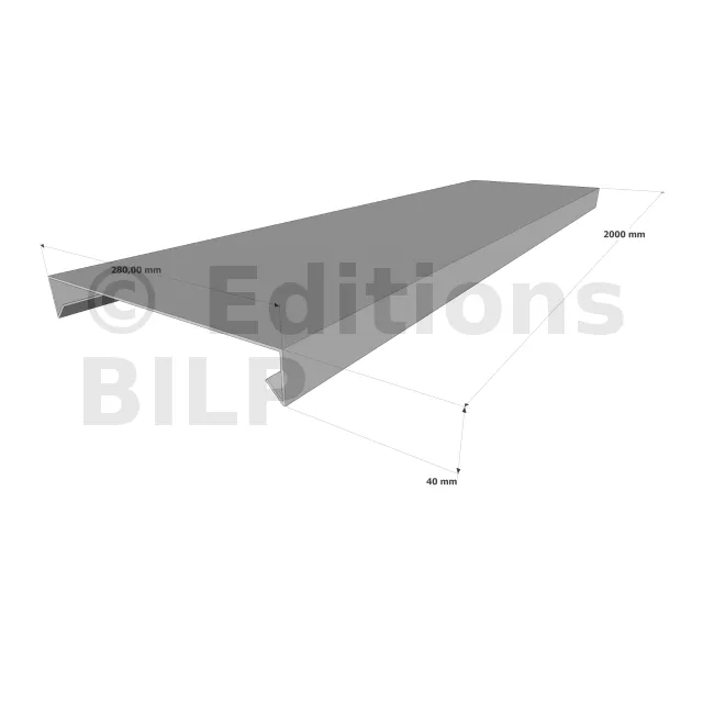 Couvertine d’acrotère plate - Gamme 280 - Aluminium 15/10 - Longueur 3000mm - Réf. CP15-280-3000