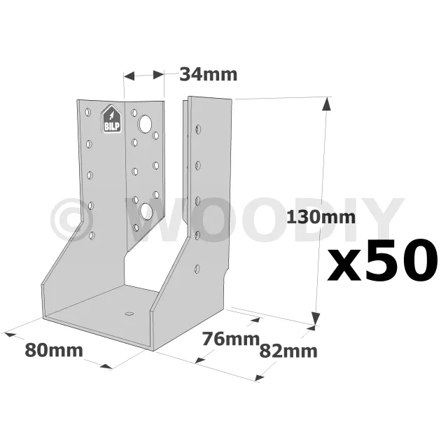On admet une tolérance de 2 mm maximum entre l‘épaisseur du bois et la largeur du sabot. Exemple : un sabot plié à 76 mm peut porter une épaisseur de bois de 74 mm.