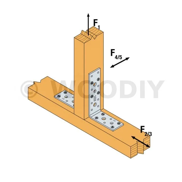 - Fixation bois/bois - type poteau/poutreAile B : 4 ; Aile C : 4 ; type : CNA Ø4.0x35 ou Ø4.0x50 mm - Assemblage avec 2 équerres