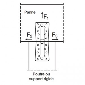 - Si l’ensemble de la structure empêche la rotation de la panne ou du poteau, la résistance en traction est égale à la moitié de la valeur donnée pour deux équerres.