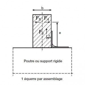 - La résistance de l’assemblage dépend de la distance « e » entre la base de l’équerre et le point d’application de la charge.