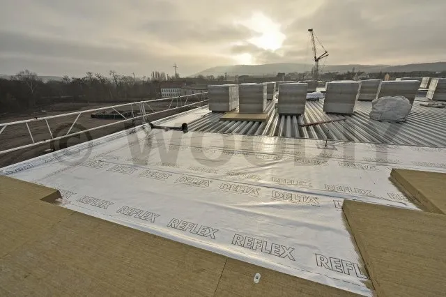 DELTA®-REFLEX est mis en œuvre sur la face chaude de la construction de manière continue en collant les recouvrements entre lés et les différents raccords latéraux ou sorties de conduits de ventilation.