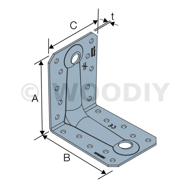 Équerres hypers RENFORCEES pour les larges sections de bois sur support BOIS et BETON - Réf. ABR9020_50