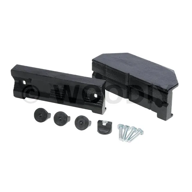 1 x mordache avant ; 1 x mordache arrière ; 4 x boulons de blocage ; 4 x boulons de montage