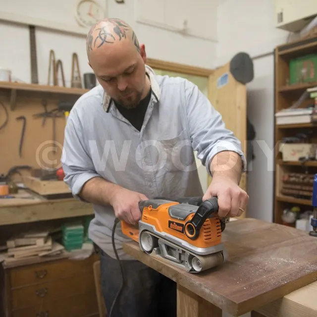 Moteur puissant de 1 200 W / 5,5 A pour une élimination rapide du matériau. Vitesse variable. Rouleau avant de petit diamètre pour poncer dans les endroits étroits et pour un travail de précision. Réglage précis du centrage de la bande. Tubulure latérale d’extraction des poussières adaptée aux sacs à poussières ou aspirateurs. Voyant de sécurité au néon indiquant la mise sous tension. Sac à poussières, presses d’inversion et 3 bandes abrasives incluses (Grain 80, 100 et 180).