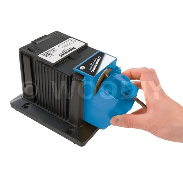 Appareil spécialement conçu pour réaliser l’affûtage de forets en acier HSS (acier rapide), burins, couteaux, ciseaux, fers de rabots, et autres lames. Comprend des gabarits afin d’obtenir un réglage de l’angle d’affûtage d’une grande précision. Garantit un affûtage rapide et soigné. Pour mèches en acier HSS (acier rapide) de 3 à 13 mm de diamètre et pour lames de 6 à 51 mm de largeur. Polyvalent et facile d’utilisation. Disques de meulage de rechange disponibles.