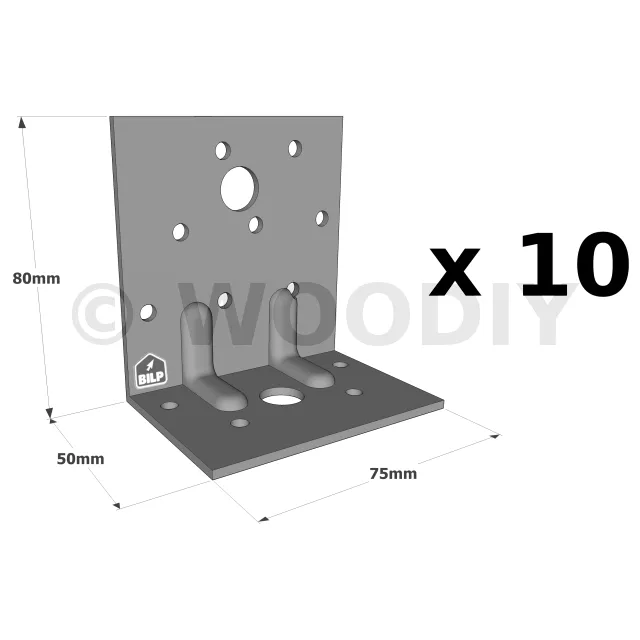 Équerres renforcées CLASSIQUES asymétriques pour le BOIS et le BETON - Réf. E14/2_10