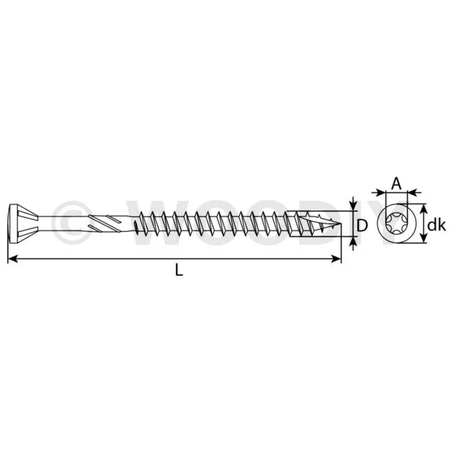 Vis pour lames de terrasse bois, tête fraisée autofraisante, inox A2