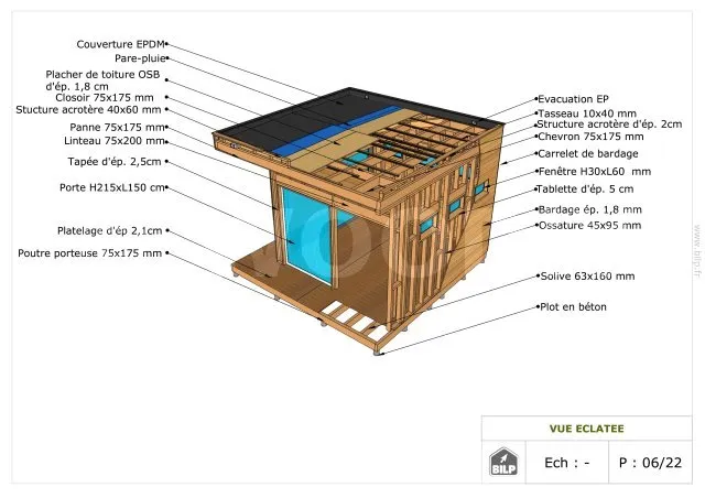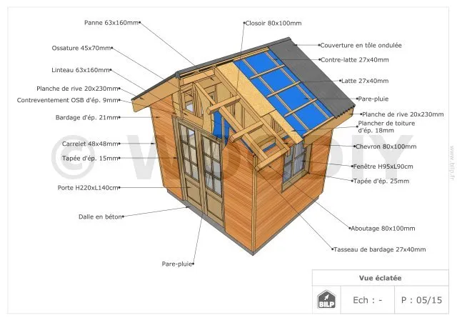 Vous aurez une vue éclatée qui vous permettra de distinguer tous les éléments constituants votre cabane.