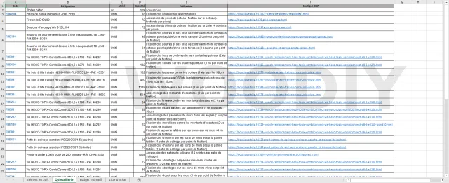 Cette liste peut être envoyée directement à votre marchand de matériaux pour réalisation d’un devis. La liste est au format EXCEL. Vous pouvez donc l’éditer, la modifier, ajouter vos informations, etc.