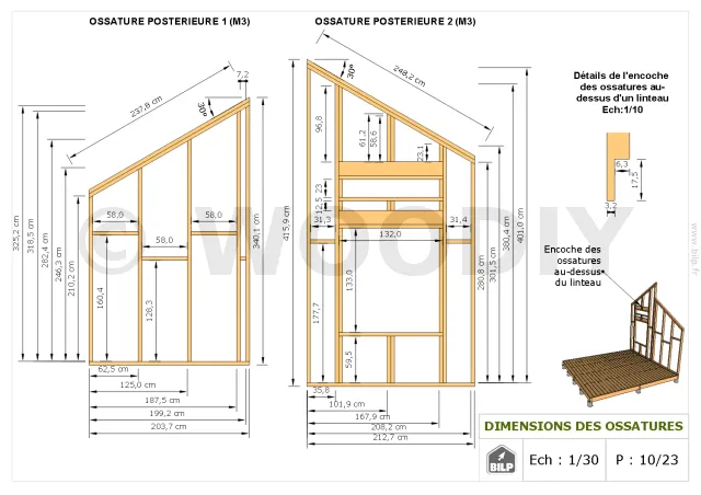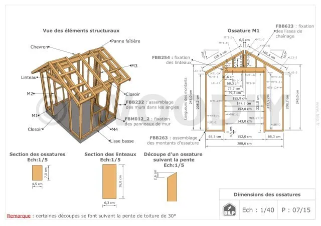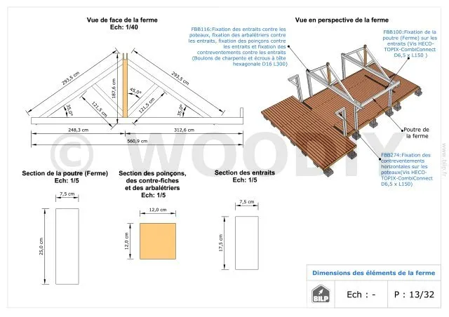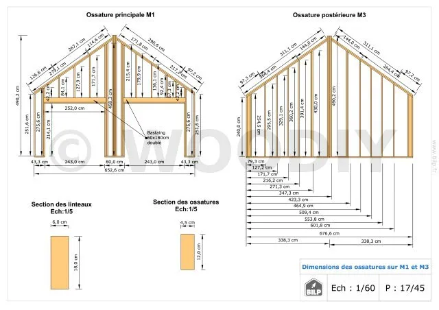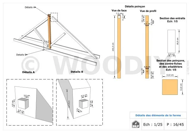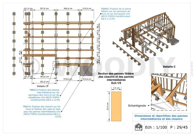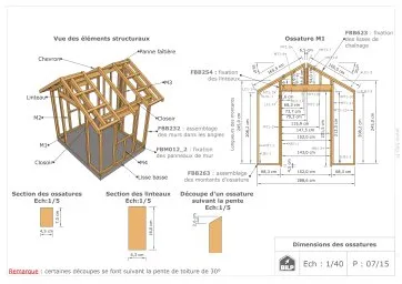 Les plans de structure à l’échelle sont faciles à lire et à comprendre. Ils vous permettrons de réaliser vous-même la structure de votre cabane. Les détails de réalisation sont indiqués. Nous calculons et optimisons les dimensions et les sections de pièces de bois.