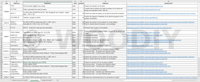 Cette liste peut être envoyée directement à votre marchand de matériaux pour réalisation d’un devis. La liste est au format EXCEL. Vous pouvez donc l’éditer, la modifier, ajouter vos informations, etc.