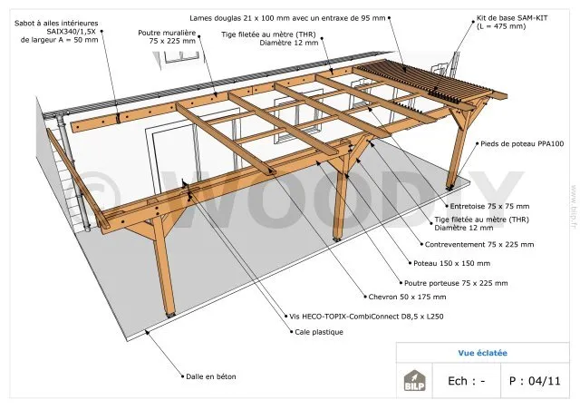 Vous aurez une vue éclatée qui vous permettra de distinguer tous les éléments constituants votre pergola.