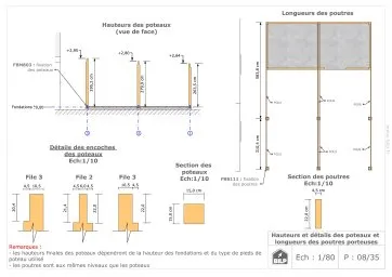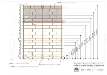 Les plans de structure à l’échelle sont faciles à lire et à comprendre. Ils vous permettrons de réaliser vous-même la structure de votre projet. Les détails de réalisation sont indiqués. Nous calculons et optimisons les dimensions et les sections de pièces de bois.