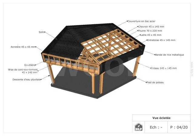 je peux vous l’envoyer GRATUITEMENT au format PDF. Il s’agit du dossier de conception d’un CARPORT en ossature-bois. Peut-être que cela vous inspirera pour votre projet.