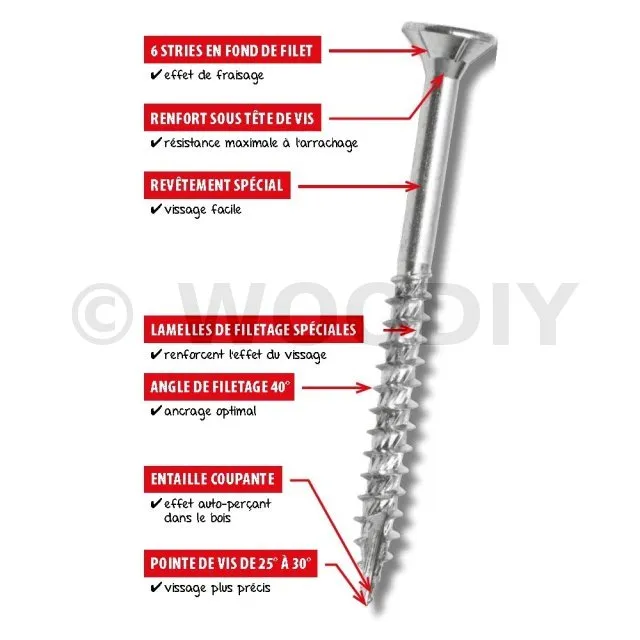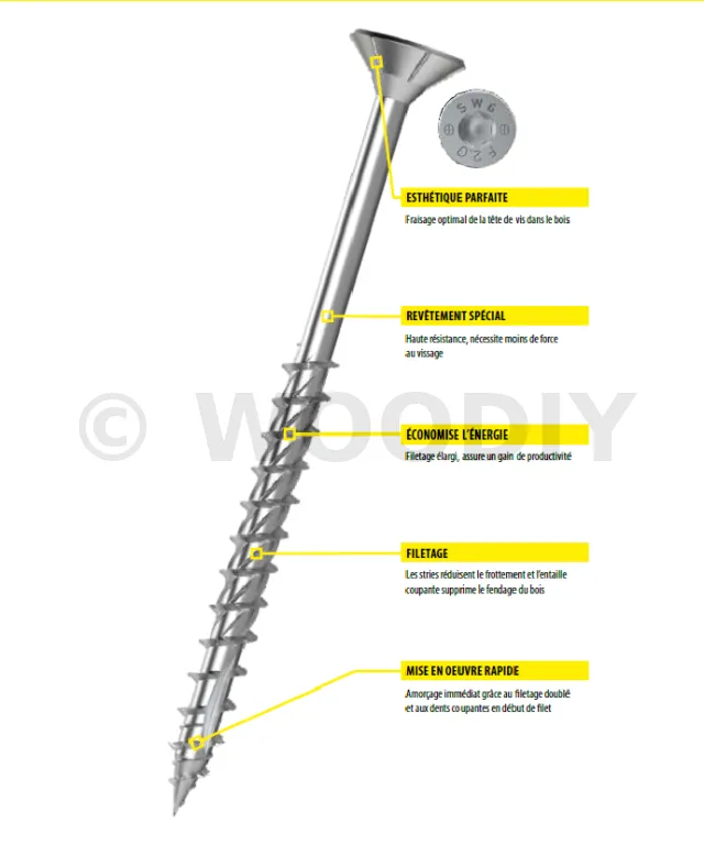 - Elle a une ESTHÉTIQUE PARFAITE noyage parfait de la tête réduit l’éclatement du bois.