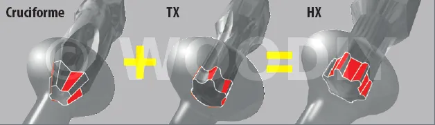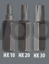 L’entraînement HX garantit, avec la forme conique de l’embout, un placement simple et fiable de la vis. La force est transmise de manière optimale grâce aux avantages combinés des empreintes cruciforme et XT. Il n’y a pas d’oscillation, l’empreinte n’est pas endommagée et la puissance de la visseuse est transmise de manière optimale.