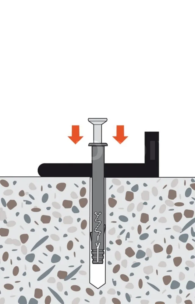 - Fixation de rails et colliers pour câbles et tuyaux.
