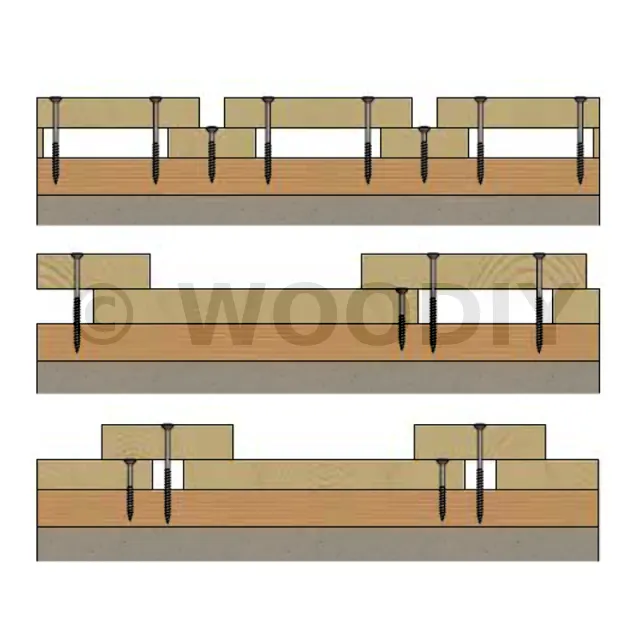 D’autre part, pour le bois dur, il est recommandé de pré-percer la planche profilée à fixer. Pour ceci : diamètre de vis = diamètre de perçage.