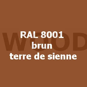 Noir | Beige (RAL 1001) | Brun terre de sienne (RAL 8001) | Brun fauve (RAL 8007) | Brun noyer (RAL 8011) | Brun rouge (RAL 8012) | Blanc (RAL9010) | ||||