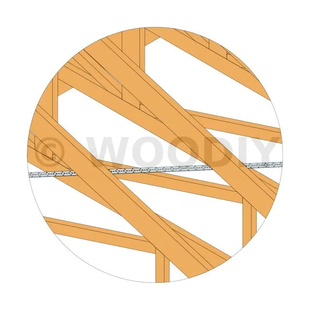 - Fixer l’autre extrémité de ces deux feuillards au tendeur FMBS afin de les associer au centre de la diagonale.