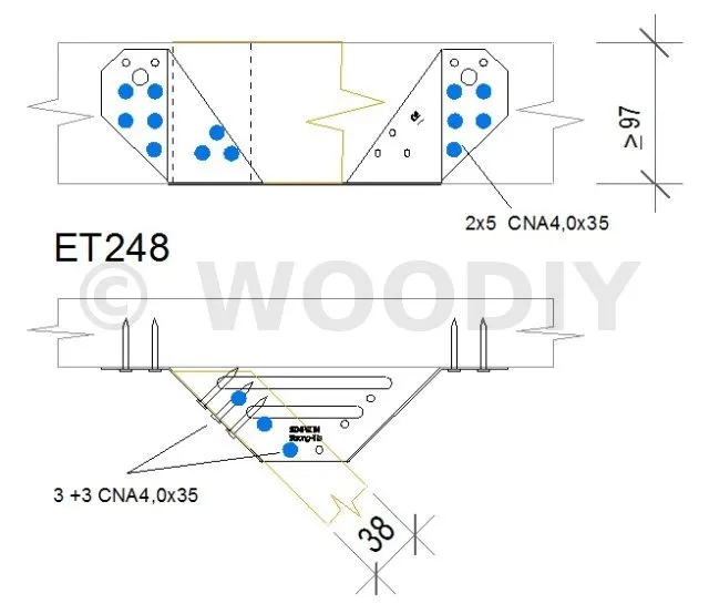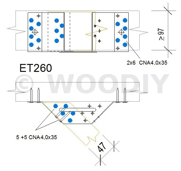 Les étriers ET à 45° regroupent en un même produit un assemblage à 45° à droite et à gauche. Ils sont principalement utilisés dans les charpentes industrialisées.
